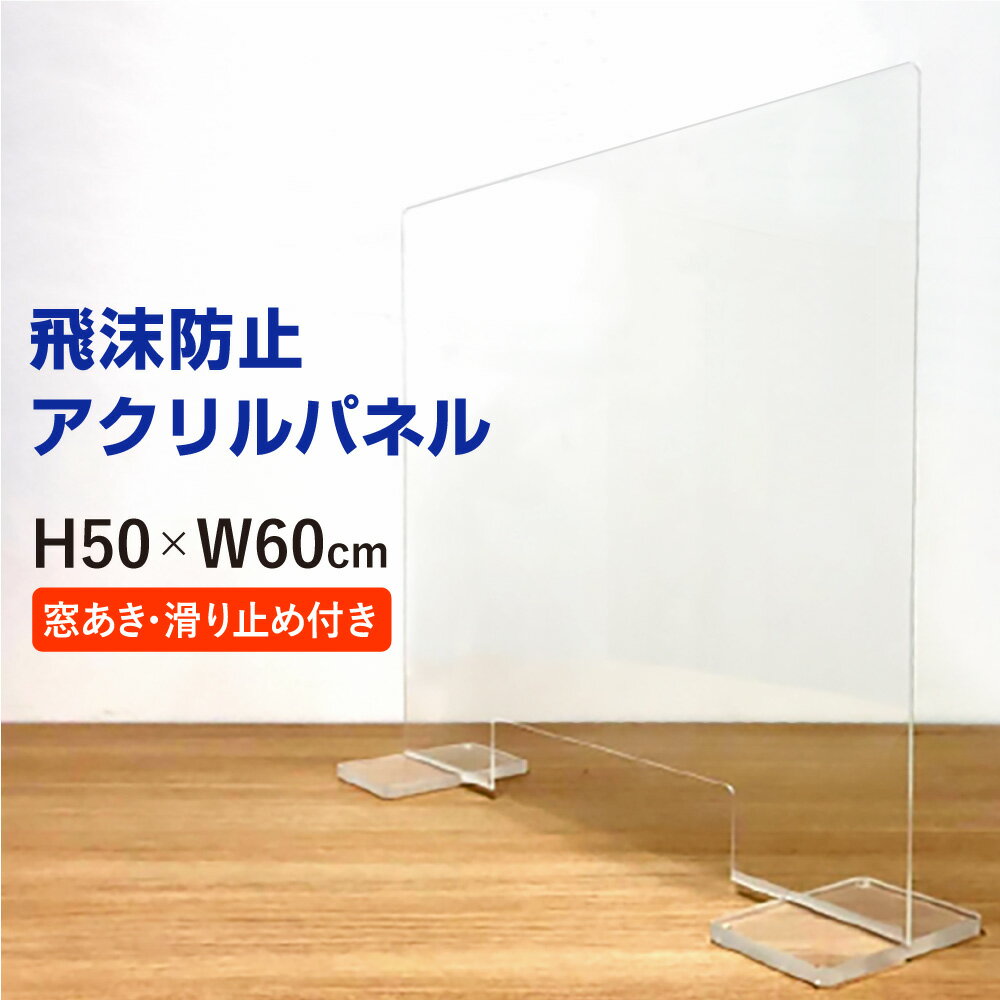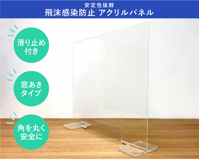 飛沫防止 アクリルパネル 窓あき 3mm厚 / 透明アクリル パーテーション アクリル板 アクリルスタンド 衝立 テーブル デスク カウンター 仕切り 間仕切り パネル 窓付き 滑り止め付き 飛沫感染対策 ウイルス対策 partition-500x600